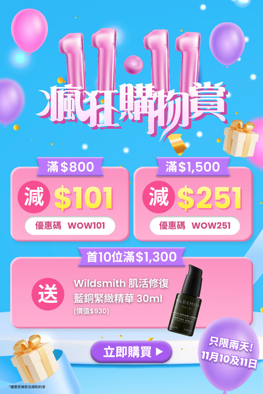 滿$800減$101,滿$1500減$251!指定日子滿額送人氣精華及Clockenflap音樂節門票!