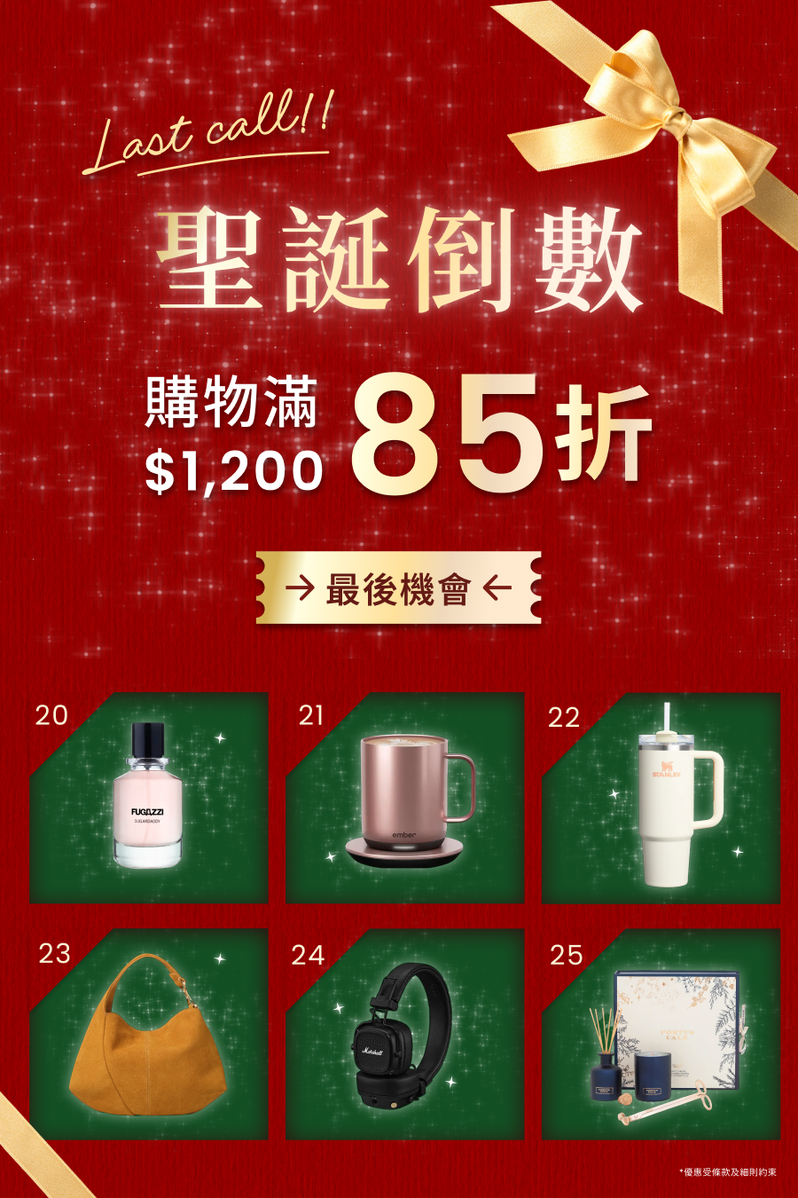 滿 $650 享 88 折|滿 $1200 享 85 折|滿 $1800 再享 8 折! 無論買聖誕禮物 🎁 或是囤貨,都係最後好機會!立即入手 >