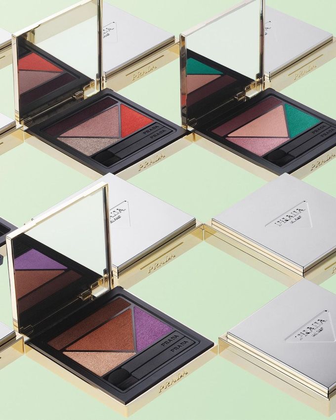 Prada 眼影盤從品牌經典印花中汲取靈感,中性的色調與顯色易暈染的質地對新手十分友好,作為品牌美妝線的首批化妝品之一,眼影盤的設計及包裝都加入品牌經典的倒三角標誌及Logo,高級又有質感。