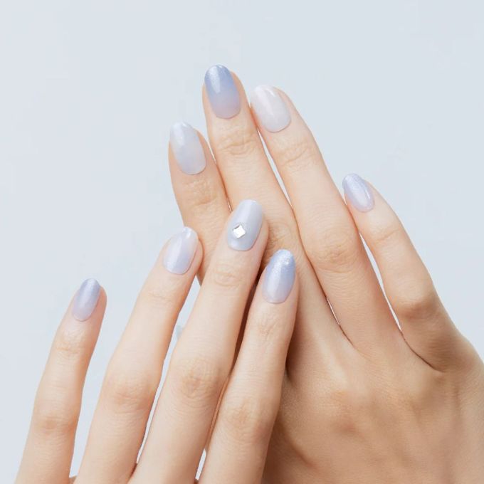 Dashing Diva 是人氣韓國指甲貼品牌,Jennie 也曾為品牌代言。這款藍白色指甲貼以可愛的小熊與柔和雲朵設計,更加入心型圖案,打造甜美又俏皮的風格。Dashing Diva 的指甲貼採用特殊專利膠膜,無須另外使用膠水,不傷指甲。