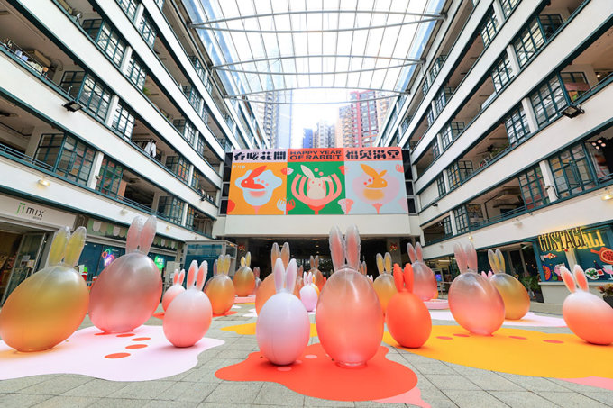 PMQ元創方於地面中庭將呈現可愛的互動賀年裝置,68隻大小不一的不倒翁兔子,造型飽滿圓潤招人喜歡。更可隨意拍打或擁抱兔子,來回搖晃牠也屹立不倒。一於和家人朋友感受福兔的可愛威力,沉浸在粉色繽紛的兔群中打卡,感受新春的喜氣和正能量。