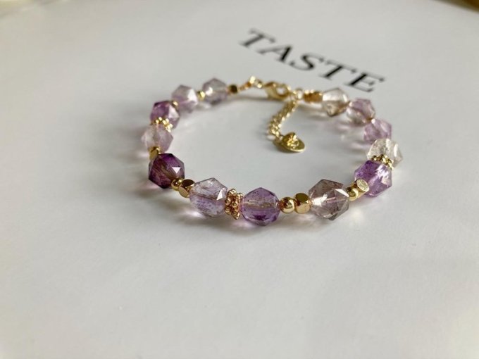 紫超七手鏈由七種共生礦物組成,擁有全面而強大的能量,可提升財運、愛情、人緣及靈性平衡。其包含的紫水晶、白水晶、茶晶等礦物,分別有開發智慧、消除負能量、防小人與招貴人的效果。紫超七像是一個能量放大器,與其他水晶搭配佩戴更能大幅提升功效。作為稀有高頻率水晶,紫超七不僅能提升運氣,更可幫助平衡所有脈輪,讓佩戴者在生活與工作中更加游刃有餘。