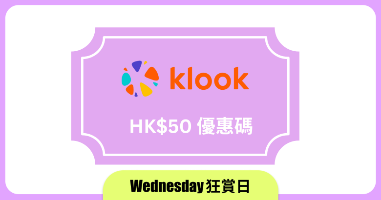 Wednesday 狂賞日 | 五折積分兌換 Klook HK$50 優惠碼