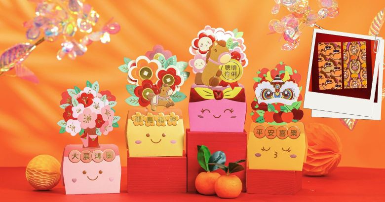 荃灣廣場推出萌爆兼一物兩用「金馬花開•座枱揮春利是封」,以凹凸浮雕及精緻燙金工藝打印,精雕細琢成立體的幸運小馬、寓意吉祥的新年盆栽及生動醒獅,配上意頭滿滿的祝福語,更可以放在家中或辦公桌作揮春擺設。