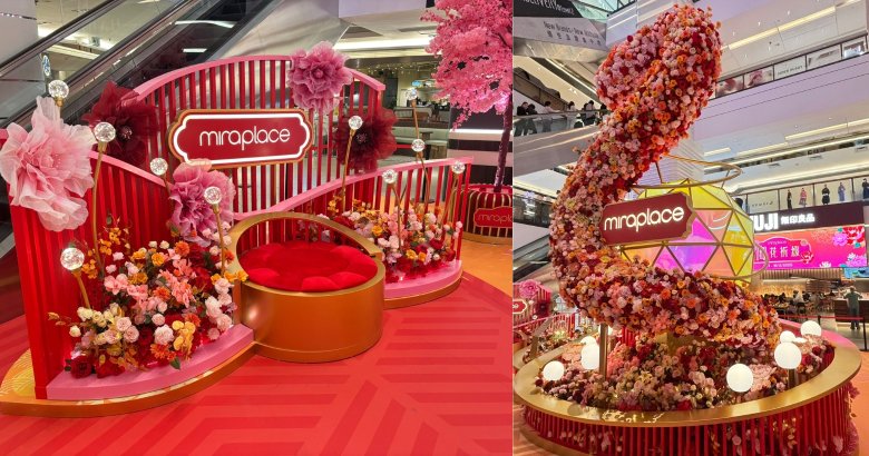 延續春意和迎接蛇年,Mira Place展出全港首個新春陶瓷花藝裝置「『陶』花祈緣」,以陶瓷花和光影效果打造超過 3,000 朵華麗花卉。