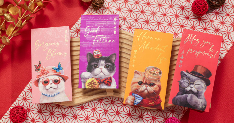 除打卡影相外,新地旗下上水廣場、北角匯、PopWalk天晉滙、荃錦中心及新領域廣場,特意聯乘本地著名藝術家LeonLollipop,推出一系列「型『喵』接福」利是封及年曆卡套裝,祝願大家新一年事事順利、如意平安!